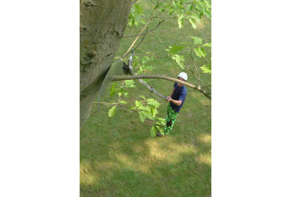 Sa lame courbe de 390 mm, équipée des dents 4-RETSUME, scie rapidement dans tous les sens, même les grosses branches. Deux couteaux intégrés garantissent une coupe nette et évitent les déchirures à la chute.